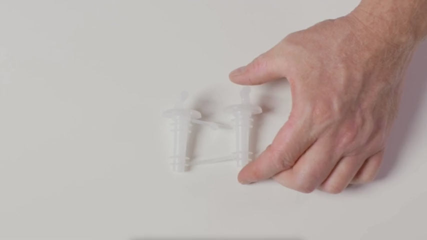 - Propbeslag, der trykkes fast i toilettets monteringshuller. Se billede.